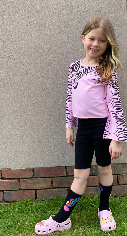 Trumpet sleeve top- Candyfloss Zebra Print