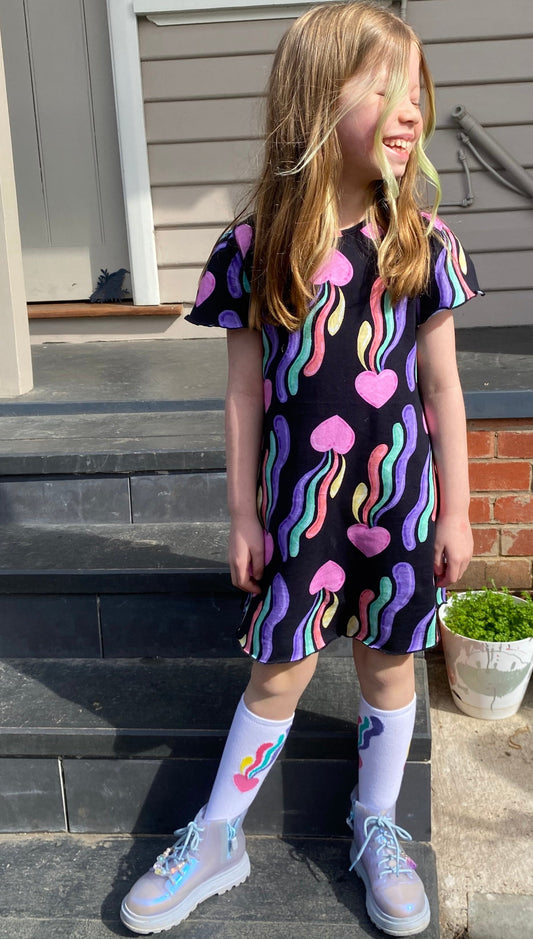 Dress- Black Rainbow Print