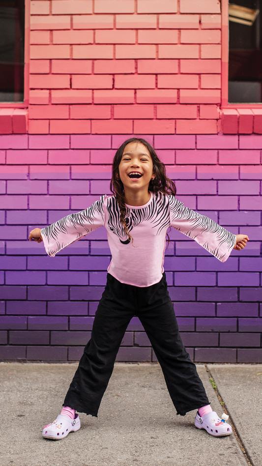 Trumpet sleeve top- Candyfloss Zebra Print