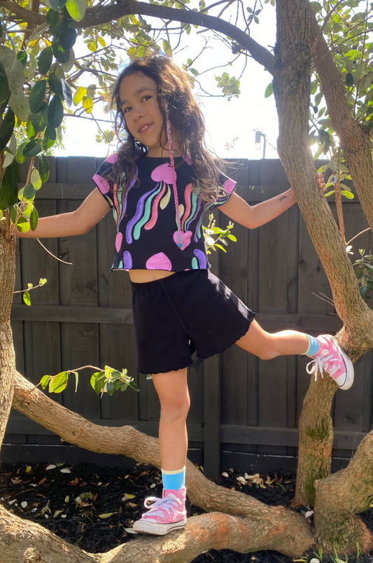 Crop tee- Black Rainbow Print