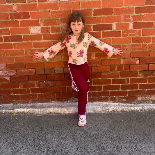 Trumpet sleeve top- Peach Flower print