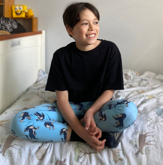Long sleeve Tee - Baby Blue Tiger/ Leopard Print